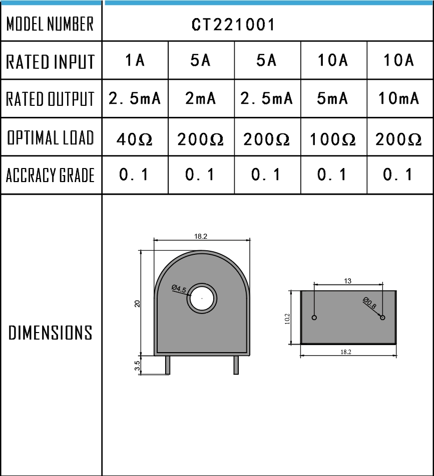 This series of products is small in size, high in precision, small in phase shift, and easy to use. It can accurately convert and isolate current signals and is mainly used in current, power and electric energy detection equipment or electric measuring instruments; at the same time, some products can use special processes to reach 10 times or even 20 times the overcurrent requirements, and can be used in power protection equipment.