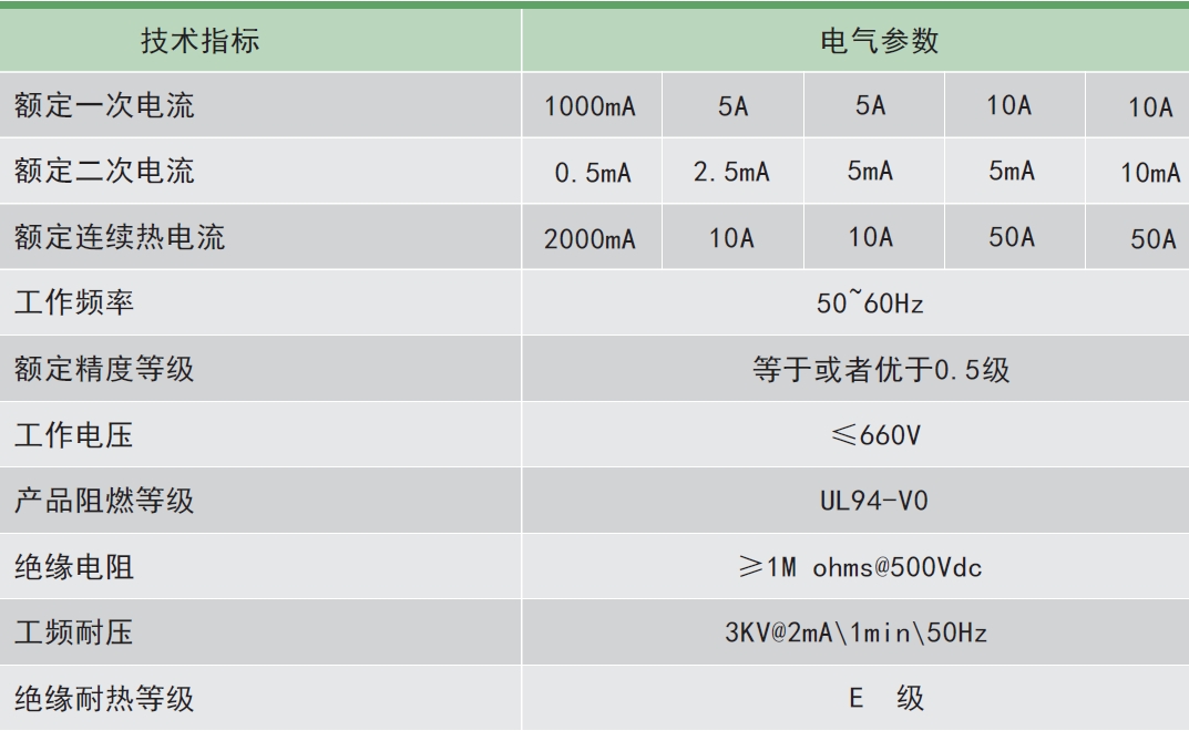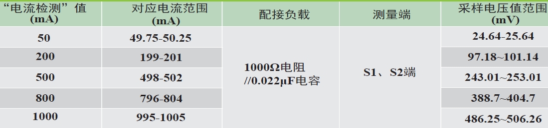 剩余電流互感器通過相應(yīng)正弦交流電流時,其輸出采樣值電壓應(yīng)滿足下表中的要求。